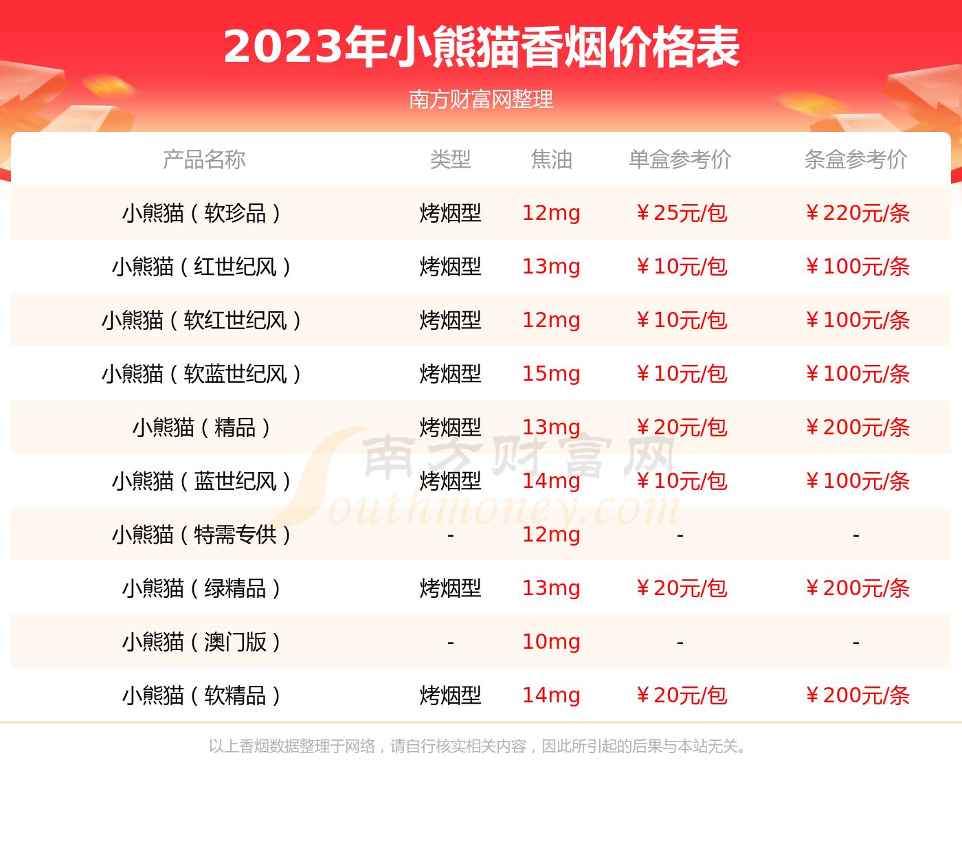 以上香烟价格相关数据由择烟网整理提供,仅供参考。