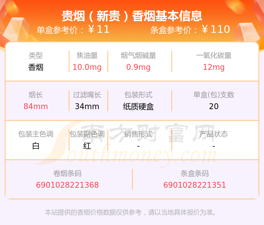 贵烟(新贵)香烟网友评分:口味6.7分,外观7.9分,性价比7.2分,综合得分7.3分。