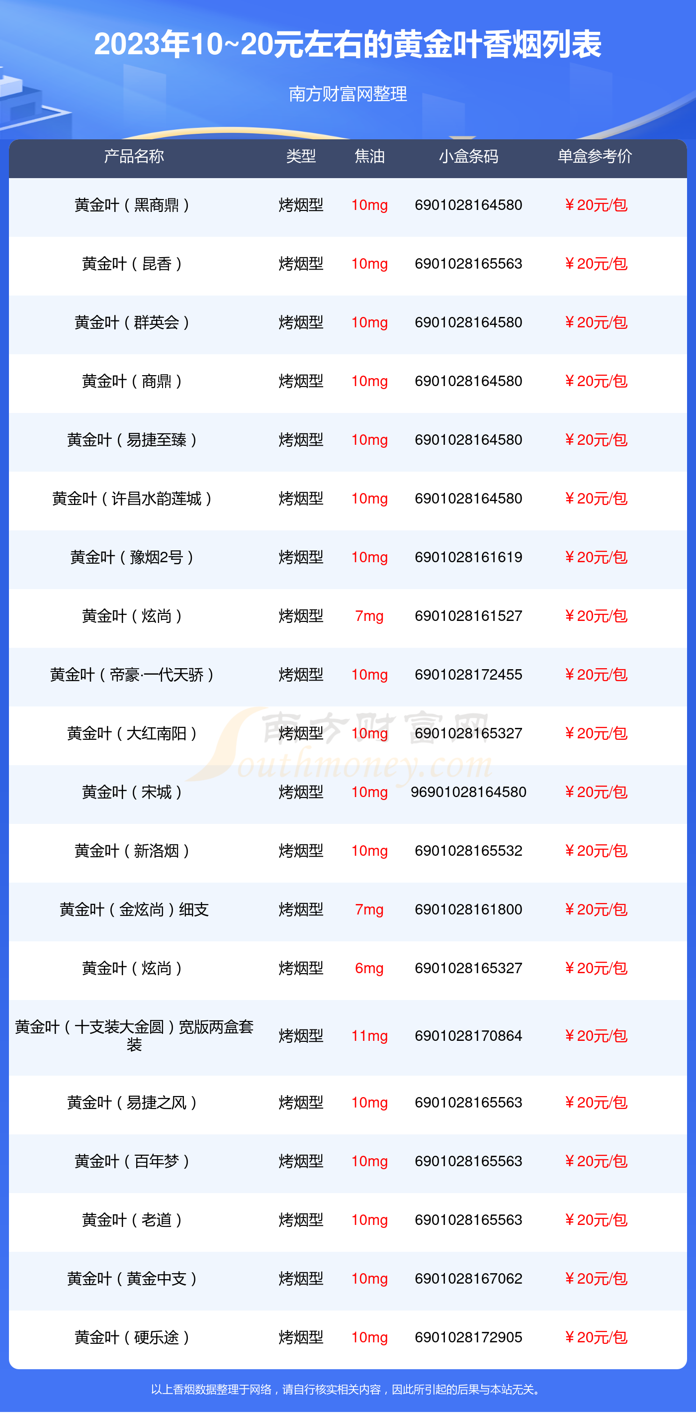 黄金叶香烟10~20元左右的烟有黄金叶(黑商鼎)、黄金叶(昆香)、黄金叶(群英会)、黄金叶(商鼎)、黄金叶(易捷至臻)、黄金叶(许昌水韵莲城)、黄金叶(豫烟2号)、黄金叶(炫尚)、黄金叶(帝豪·一代天骄)、黄金叶(大红南阳)等,详细价格如下: