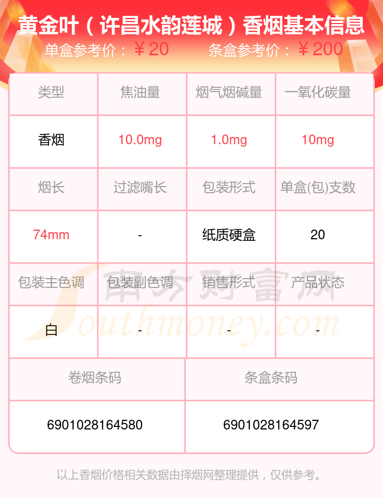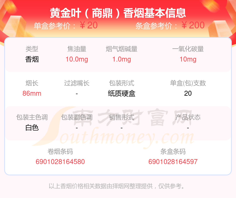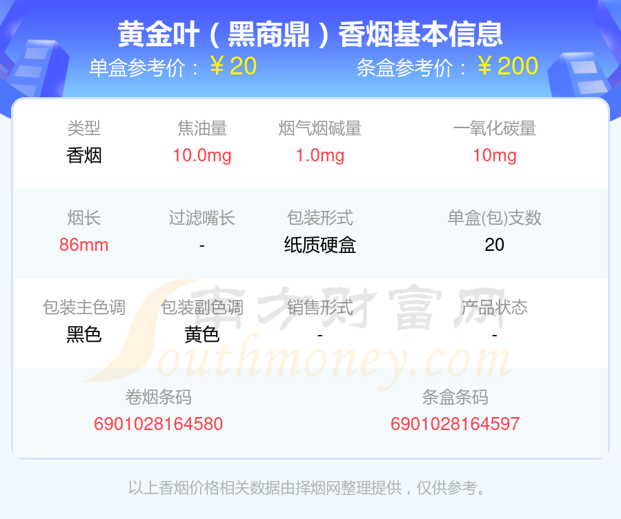黄金叶香烟10元至20元左右的烟分别有黄金叶(黑商鼎)参考价20.0元/包、黄金叶(昆香)参考价20.0元/包、黄金叶(群英会)参考价20.0元/包、黄金叶(商鼎)参考价20.0元/包、黄金叶(易捷至臻)参考价20.0元/包、黄金叶(许昌水韵莲城)参考价20.0元/包、黄金叶(豫烟2号)参考价20.0元/包、黄金叶(炫尚)参考价20.0元/包、黄金叶(帝豪·一代天骄)参考价20.0元/包、黄金叶(大红南阳)参考价20.0元/包等。