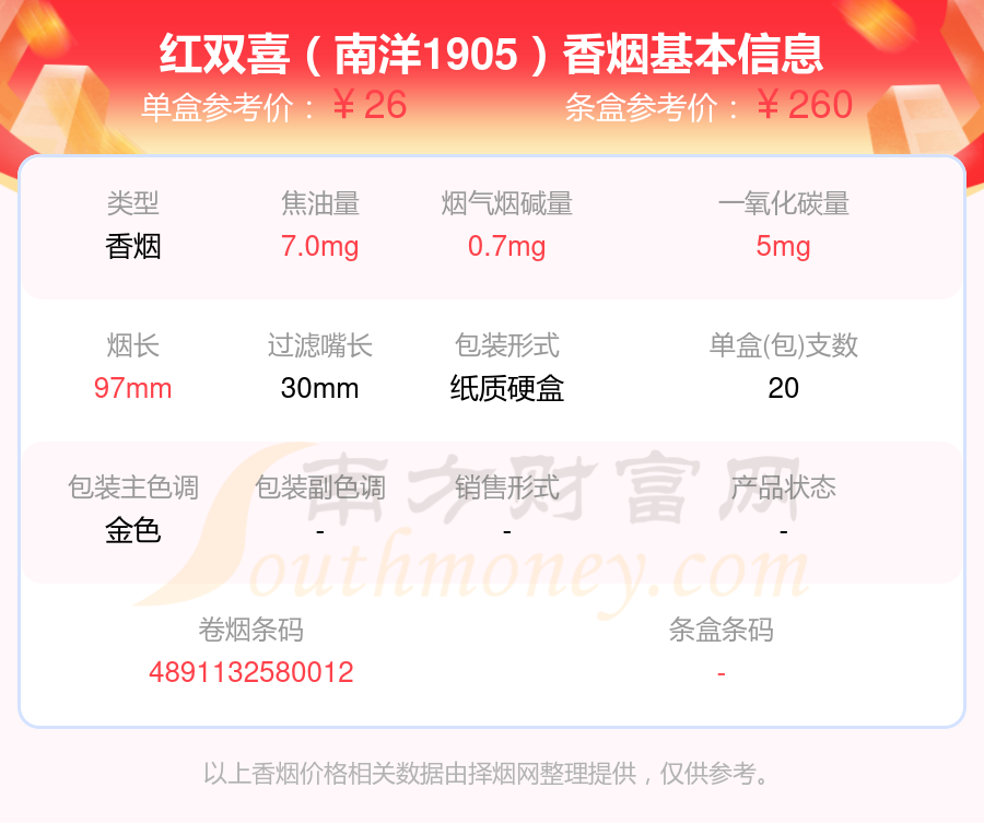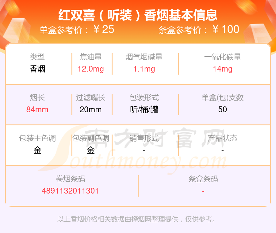 以上香烟价格相关数据由择烟网整理提供,仅供参考。