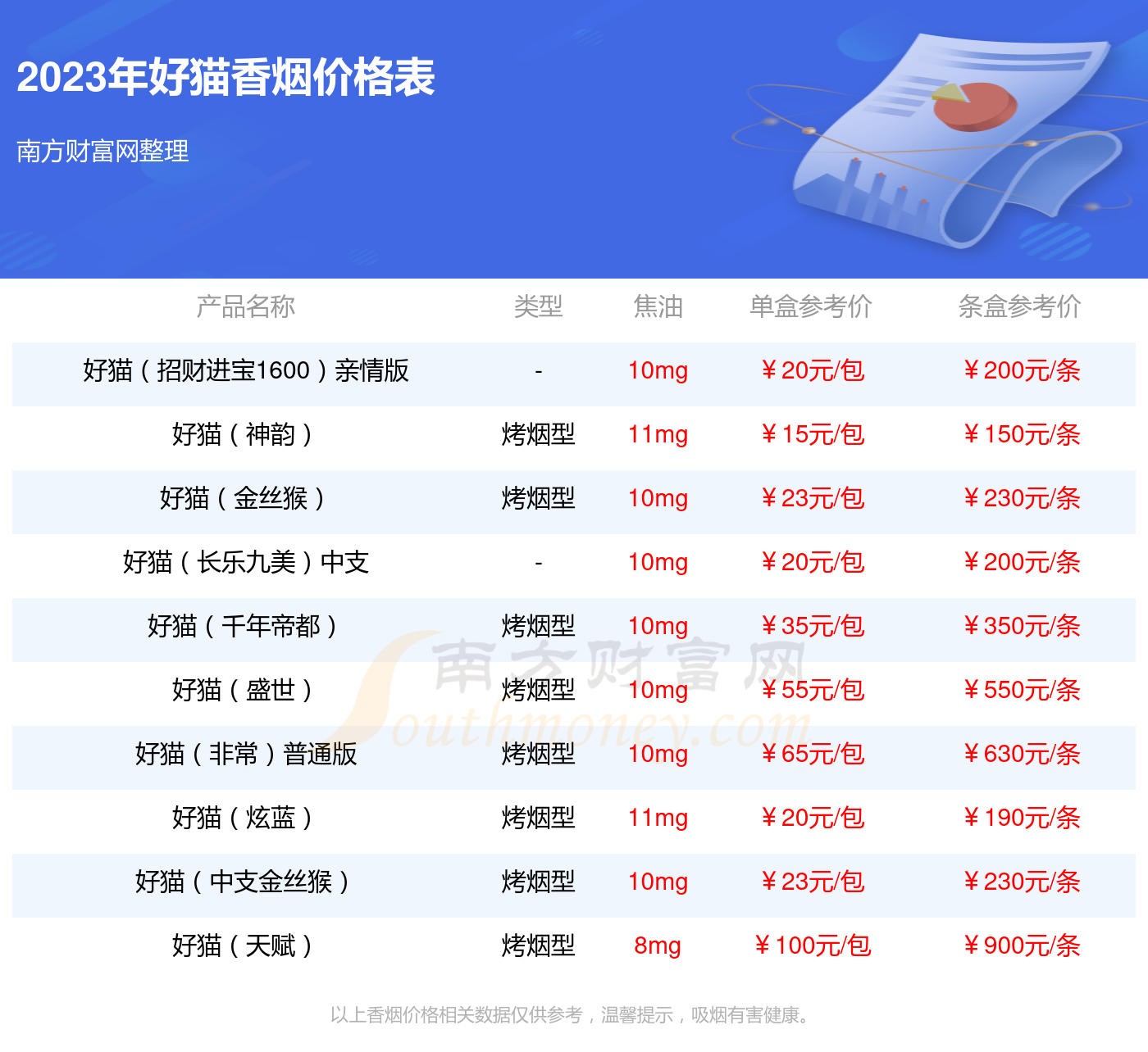 金好猫香烟多少钱一包?2023年好猫香烟价格