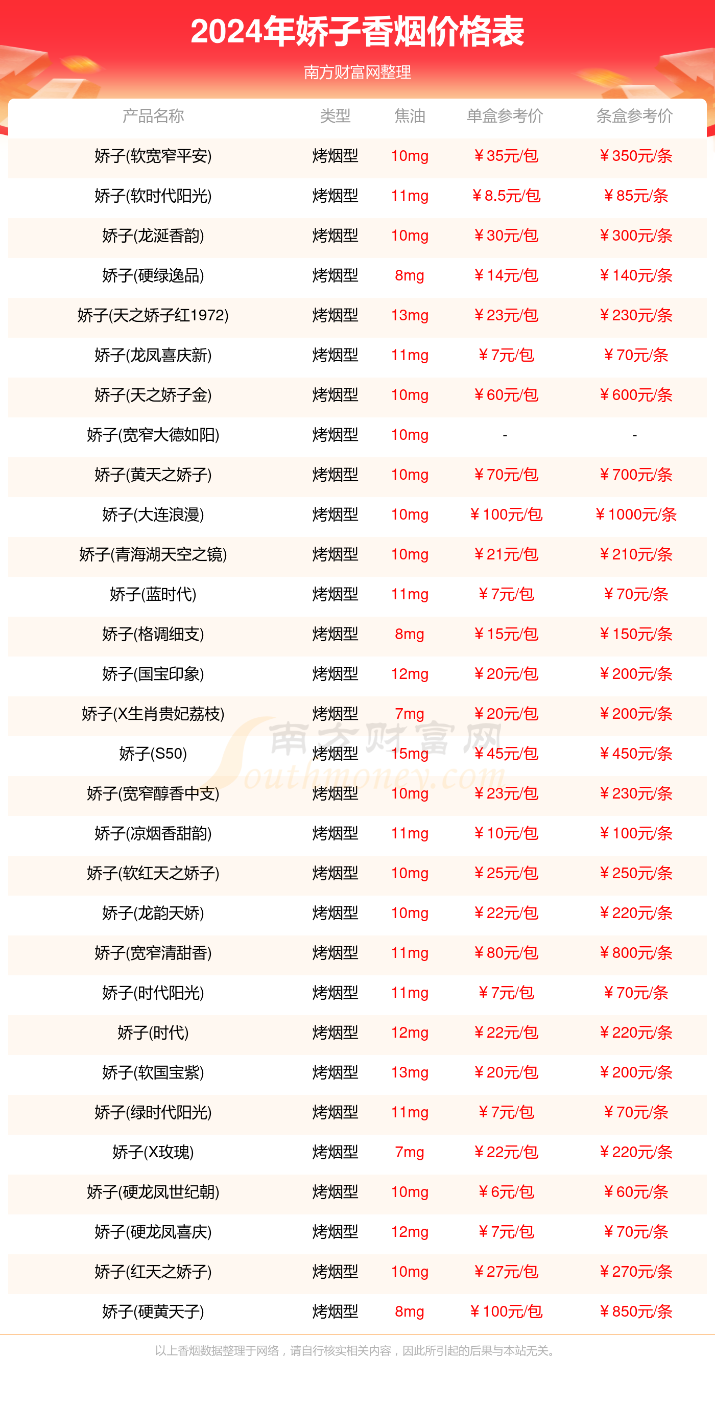 以上香烟价格相关数据由择烟网整理提供,仅供参考。