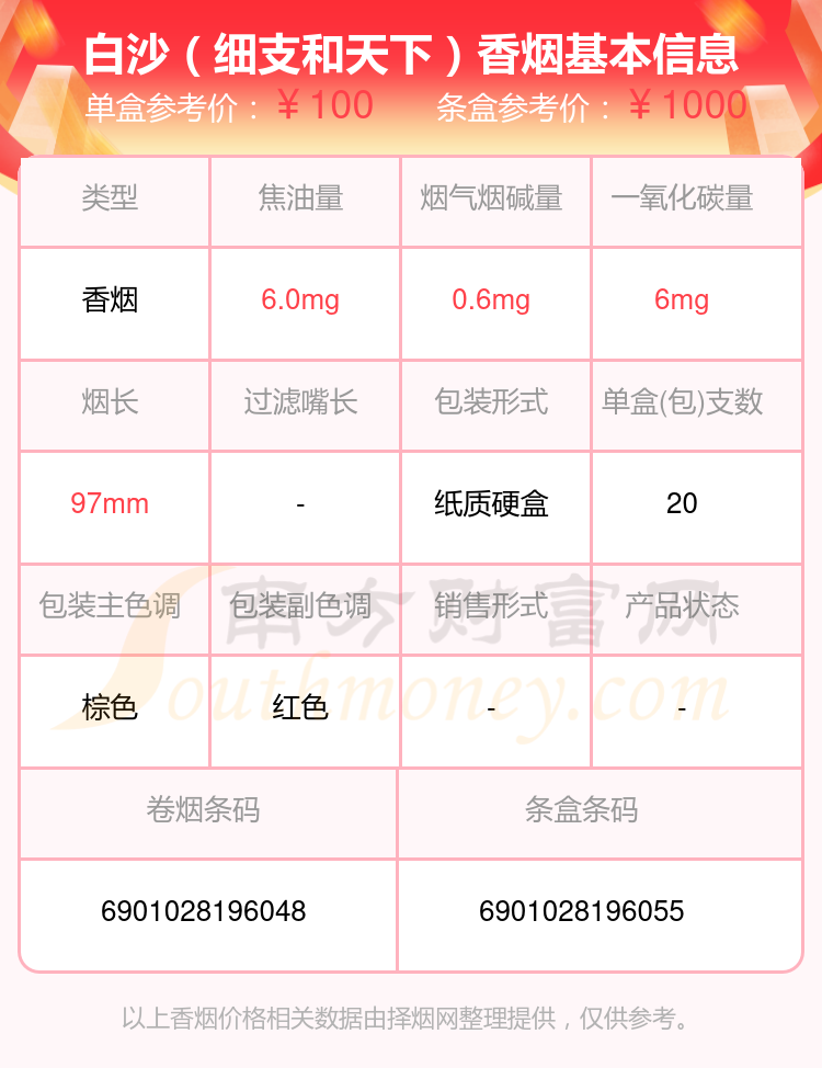 以上香烟价格相关数据由择烟网整理提供,仅供参考。