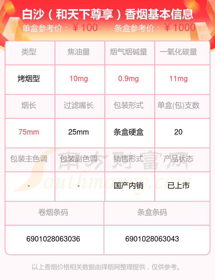 3、白沙(和天下尊品中支)