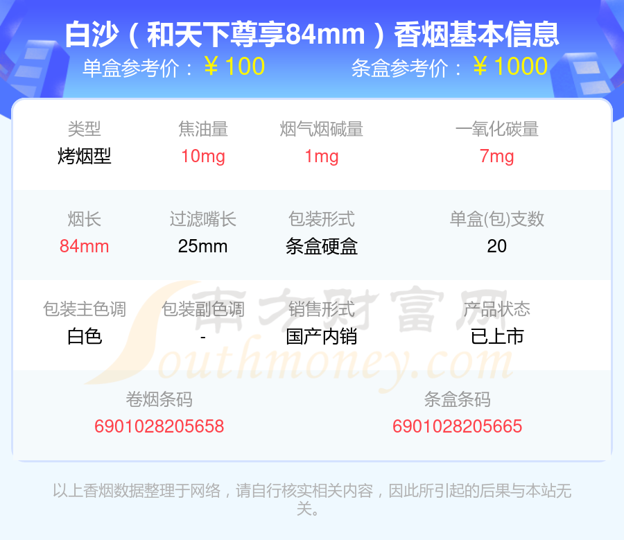 9、白沙(和天下尊享84mm)