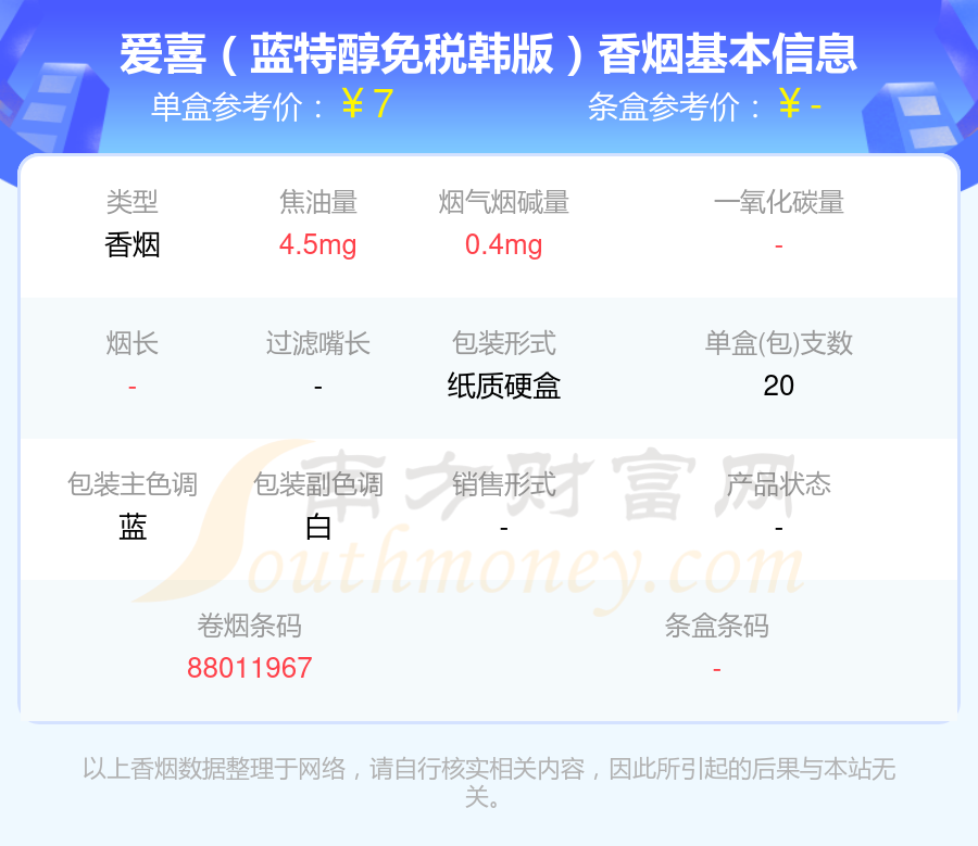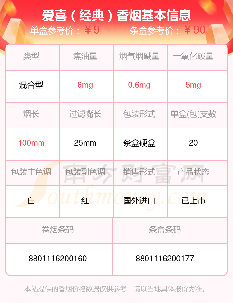 以上香烟价格相关数据由择烟网整理提供,仅供参考。