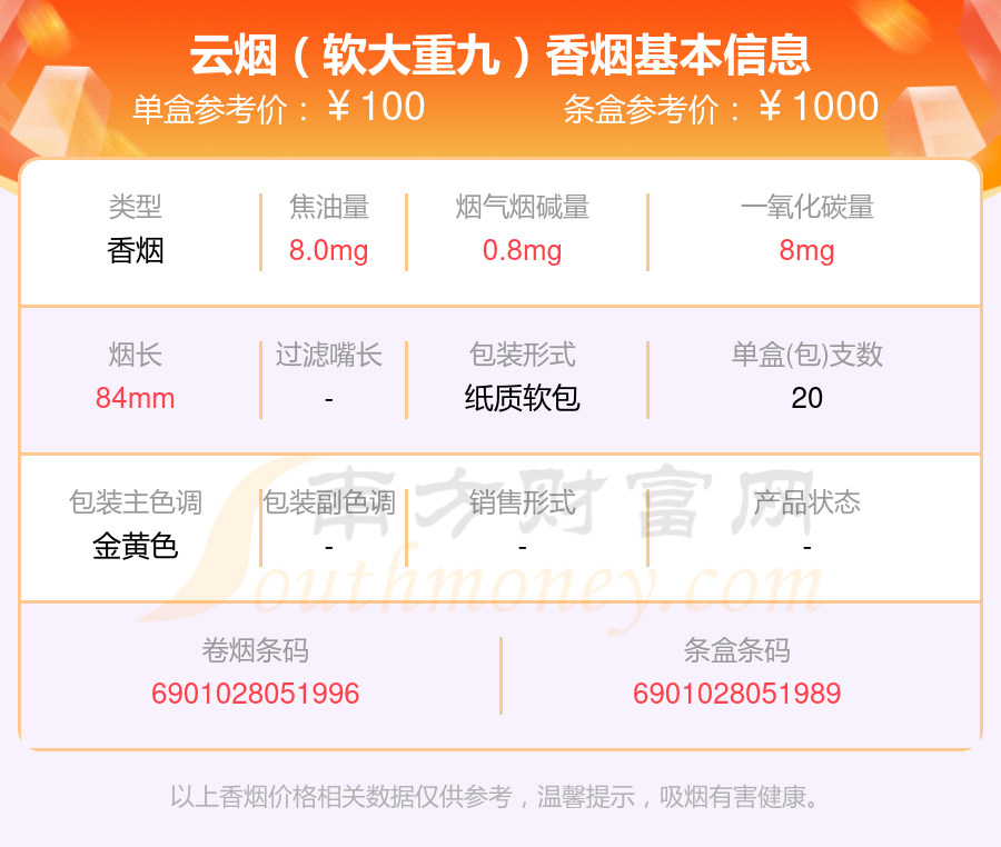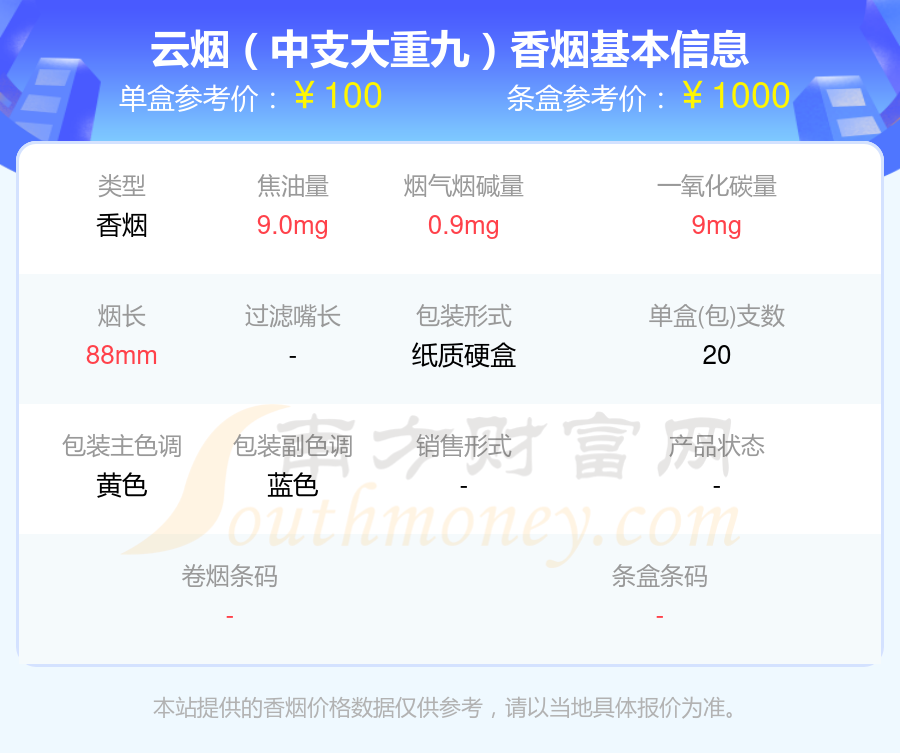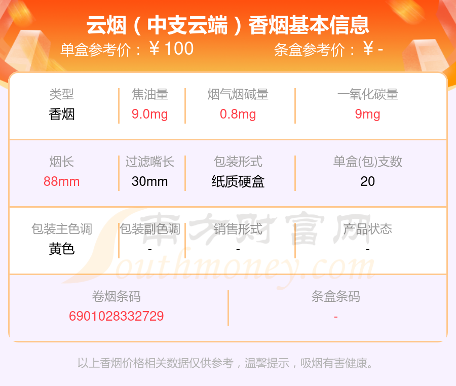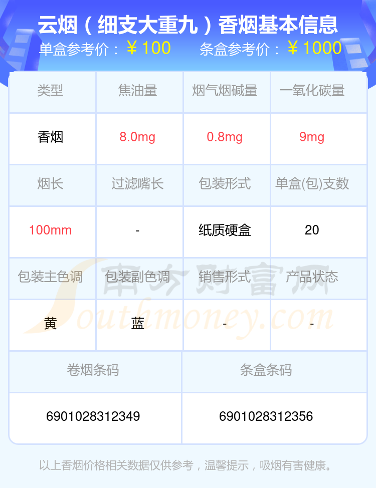 以上香烟价格相关数据仅供参考,温馨提示,吸烟有害健康。