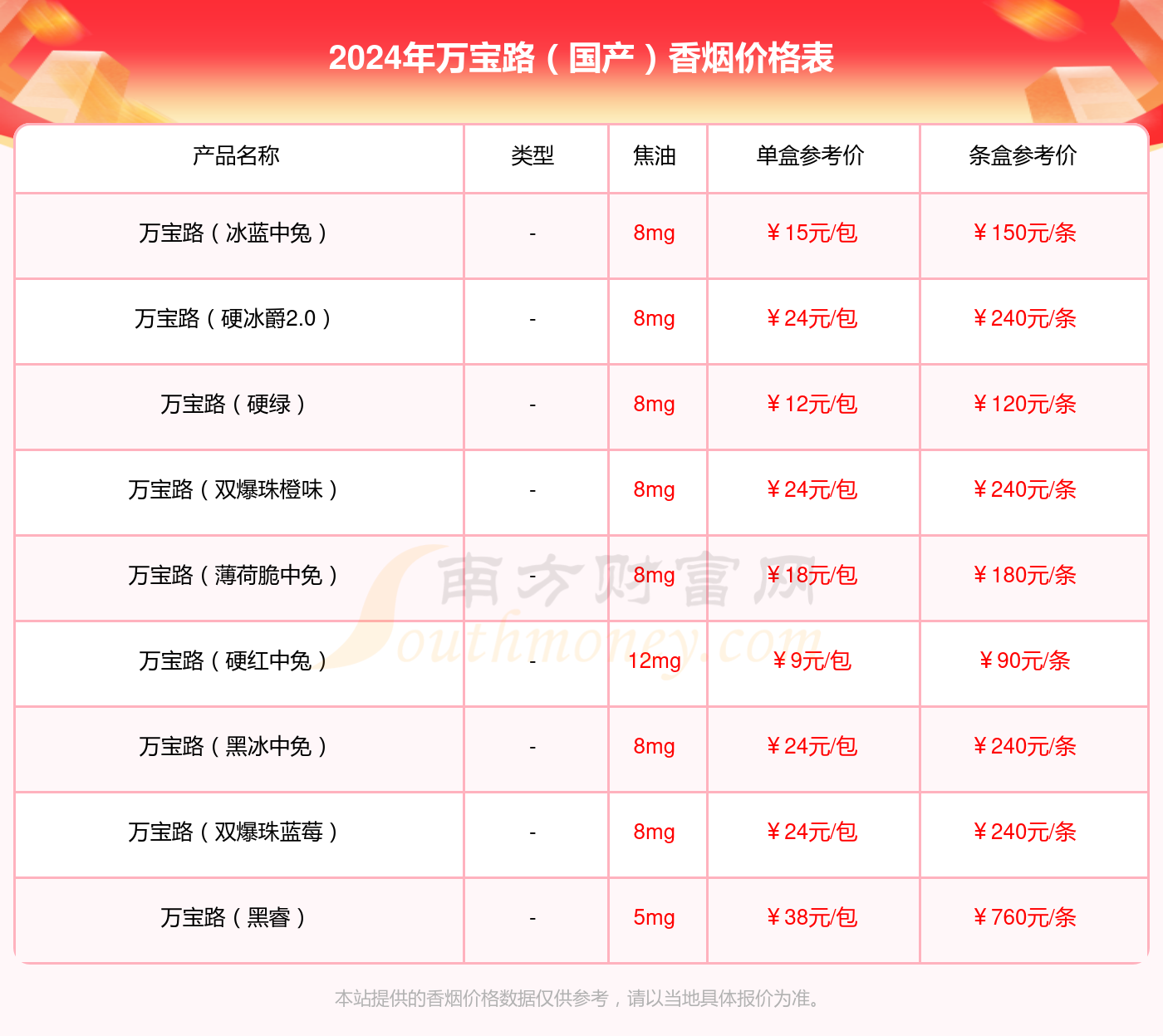 以上香烟价格相关数据仅供参考,温馨提示,吸烟有害健康。