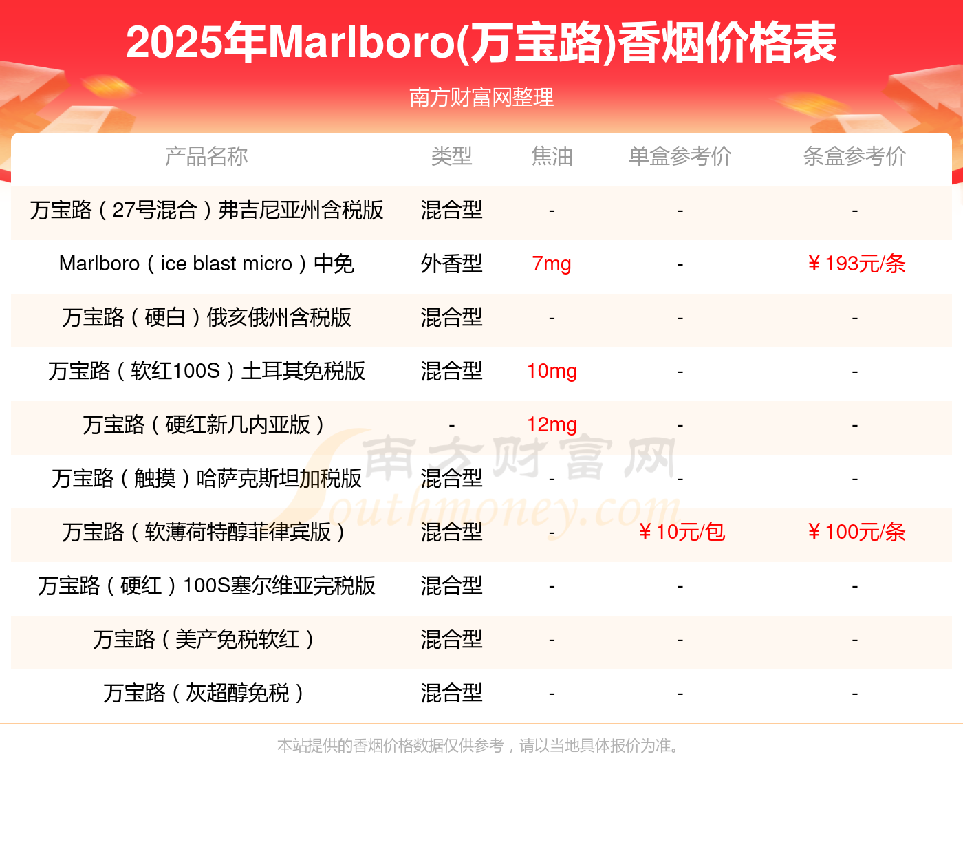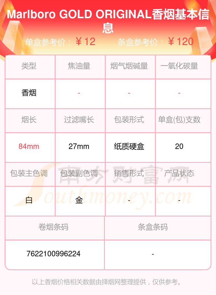 MarlboroGOLDORIGINAL单盒参考价:12元
