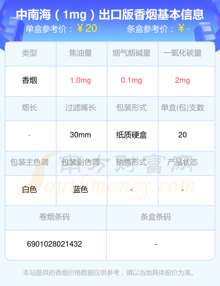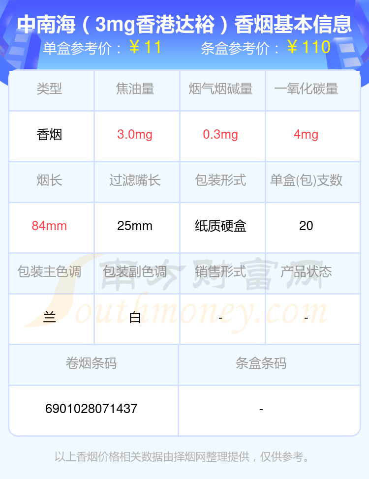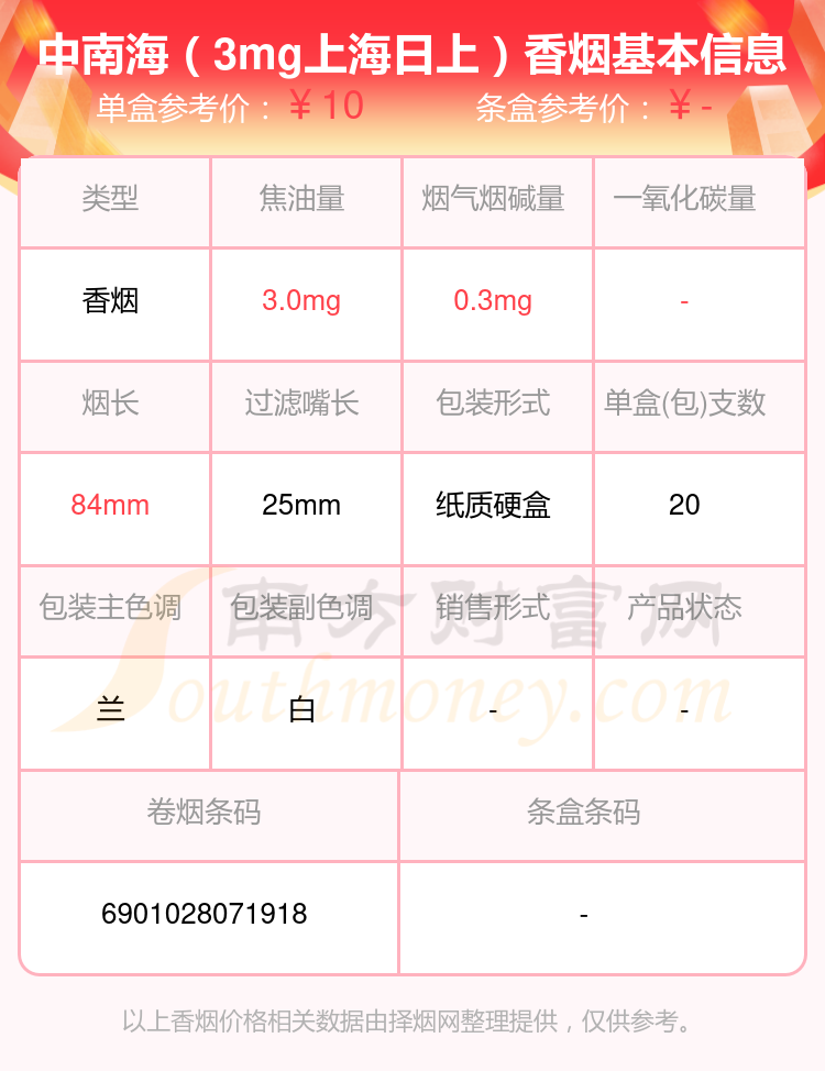 以上香烟数据整理于网络,请自行核实相关内容,因此所引起的后果与本站无关。