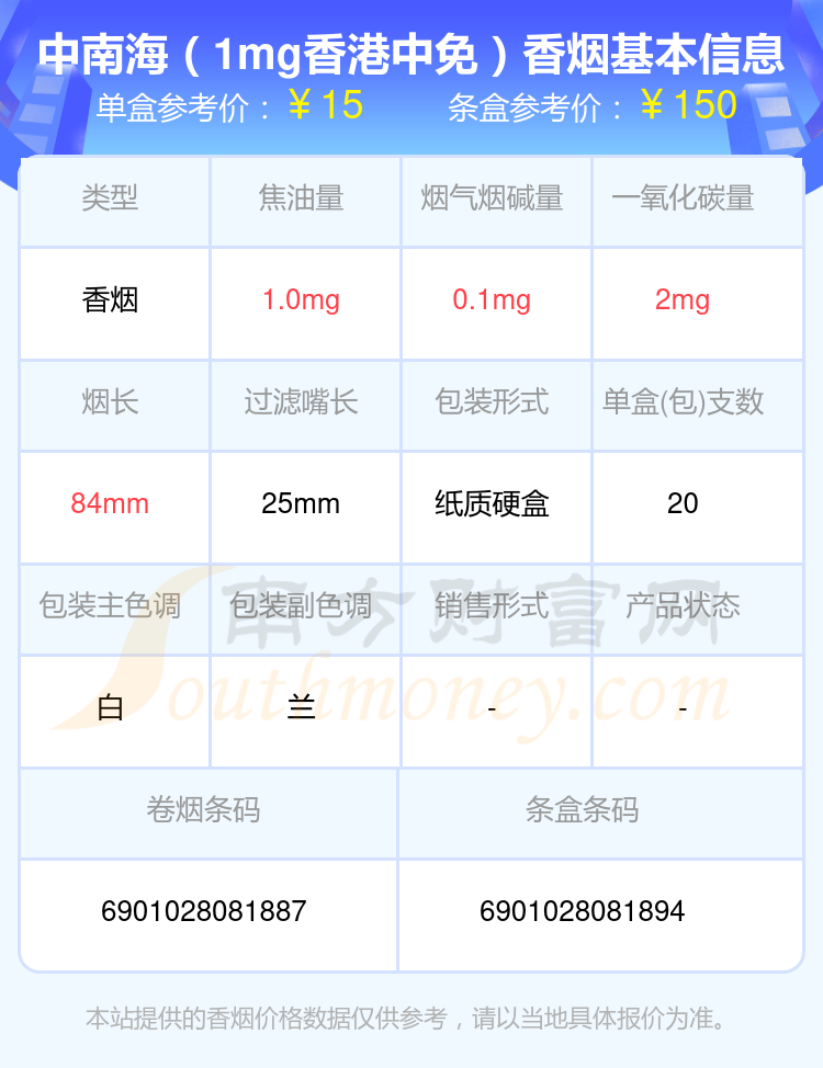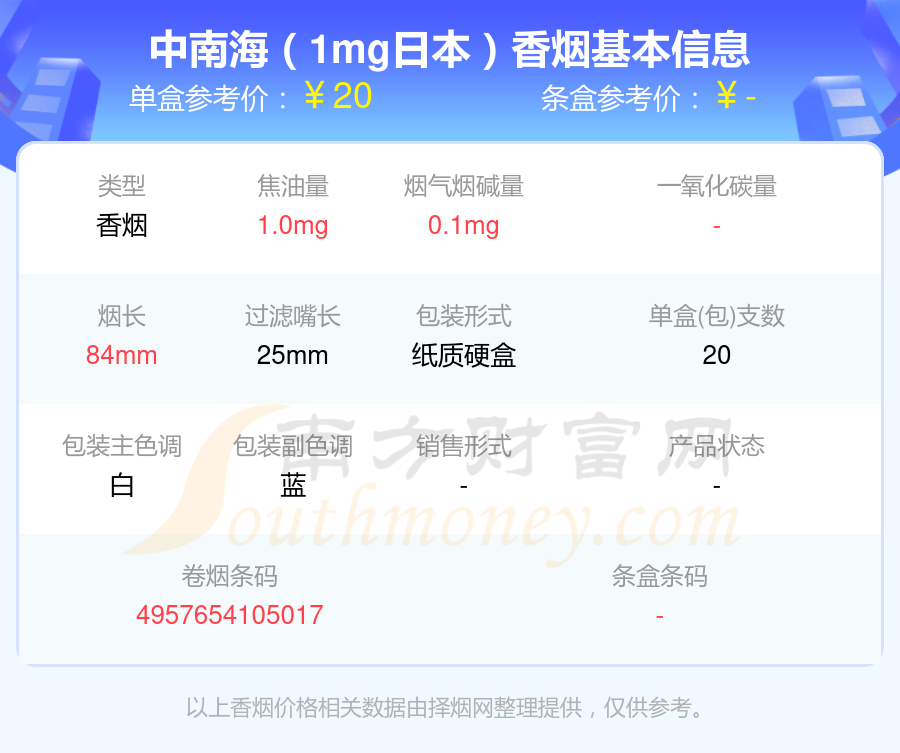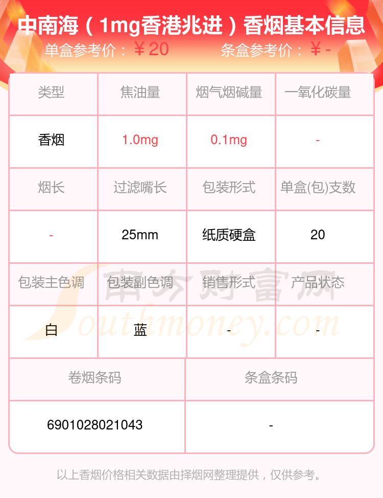 以上香烟价格相关数据由择烟网整理提供,仅供参考。